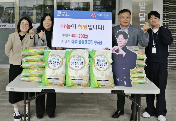 ‘송aid’는 배우 송강의 고향인 팔달구를 위해 지난 3년간 꾸준히 나눔을 이어오고 있는 팬모임으로, 그동안 지역 내 사회복지시설과 취약계층을 대상으로 백미와 성금을 지속적으로 후원하며 지역사회에 따뜻한 나눔 문화를 확산하고 있다.