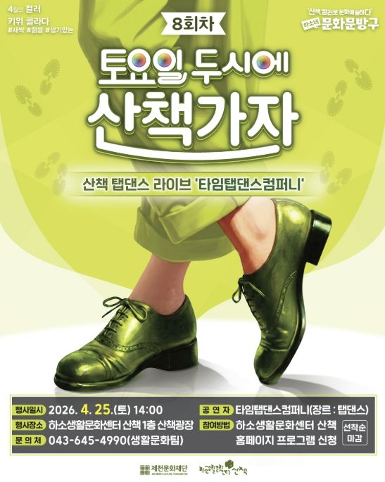 경기호연뉴스 민선기 기자 | 제천문화재단이 운영하는 하소생활문화센터 ‘산책’에서 매주 토요일 시민들과 함께하는 문화예술 프로그램 '토요일 두시에 산책가자'의 여덟 번째 무대로 ‘탭댄스 공연’을 선보인다.