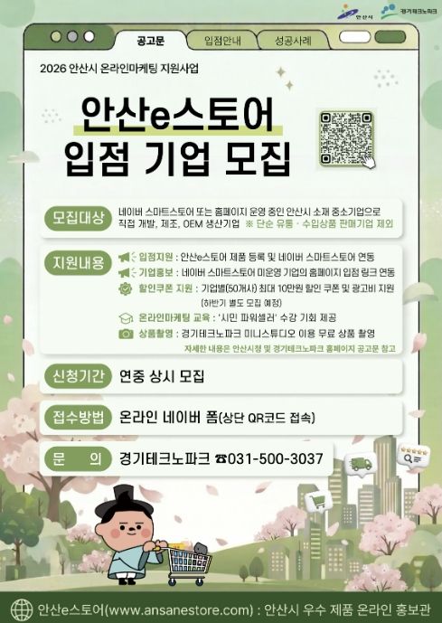 경기호연뉴스 민선기 기자 | 안산시는 관내 중소기업의 판로 확대와 홍보 강화를 위해 안산시 우수 제품 온라인 홍보관 ‘안산e스토어’에 신규 입점할 기업을 모집한다고 23일 밝혔다.