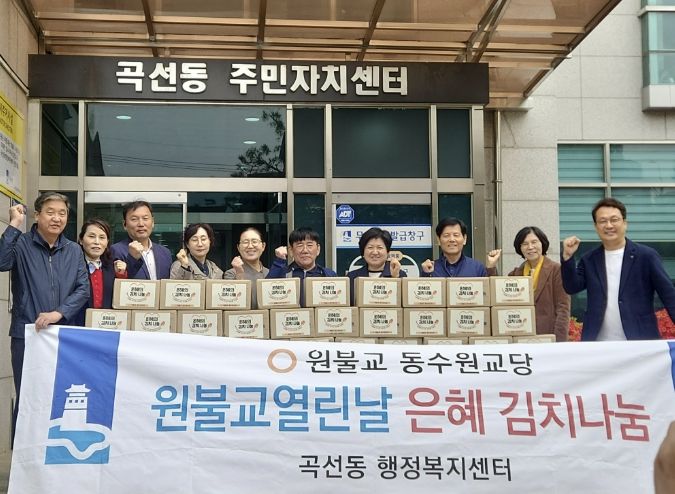경기호연뉴스 민선기 기자 | 원불교 동수원교당은 지난 22일 수원시 권선구 곡선동 행정복지센터에서 봄맞이 ‘은혜김치 나눔’ 전달 행사를 개최하고, 정성껏 담근 김치 30박스를 곡선동에 전달했다.