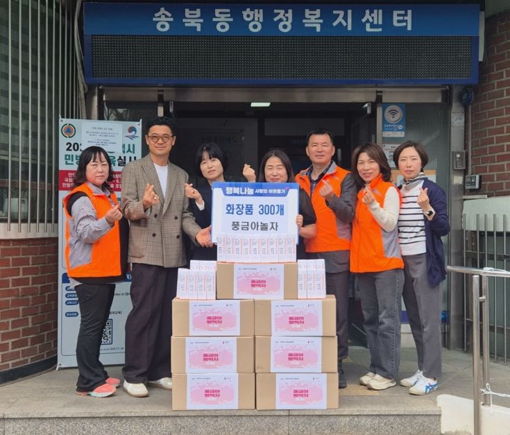 정연숙 송북동장은 “지역사회보장협의체에서 지역 내 나눔 실천 업체를 적극적으로 발굴해 주셔서 감사드리며, 기부하신 화장품은 꼭 필요한 분들께 소중히 전달하겠다”라고 말했다.