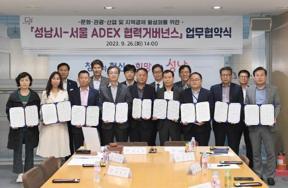 시는 9월 26일 오후 2시 시청 4층 회의실에서 ‘성남시-서울 ADEX 협력 거버넌스(이하 아덱스 민·관 협력체) 구성·운영에 관한 업무협약’을 했다.