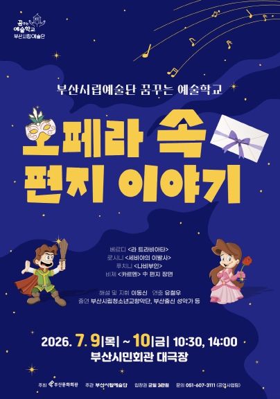 연주는 부산시립청소년교향악단이 맡으며, 이동신 교수의 지휘와 함께 더해질 해설은 관객의 이해를 돕고 공연의 재미를 한층 높일 예정이다. 공연은 오는 7월 9일(목)과 10일(금) 이틀간 오전 10시 30분, 오후 2시 하루 2회씩 총 4회에 걸쳐 부산시민회관에서 열린다. 현재 부산시내 초·중·고등학생을 대상으로 관람 예약이 진행 중이다.
