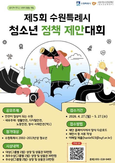 수원시청소년청년재단 관계자는 “청소년이 지역 문제를 스스로 고민하고 정책으로 제안하는 의미 있는 과정”이라며 “참신한 아이디어가 실제 정책으로 이어질 수 있도록 많은 관심과 참여를 바란다”고 말했다.