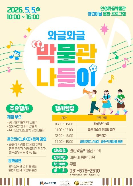 경기호연뉴스 민선기 기자 | 안성맞춤박물관은 오는 5월 5일 어린이날을 맞아, 온 가족이 함께 즐길 수 있는 문화 프로그램 ‘와글와글 박물관 나들이’를 개최한다고 밝혔다.
