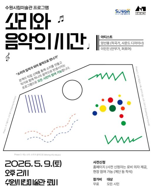 경기호연뉴스 민선기 기자 | 경기도 수원시립미술관은 을 맞아 소리를 주제로 한 음악 프로그램 '소리와 음악의 시간'을 5월 9일 개최하며 참여자를 모집한다.