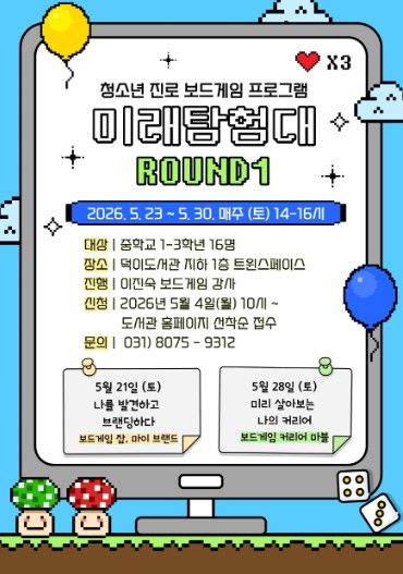 경기호연뉴스 민선기 기자 | 고양특례시 덕이도서관은 청소년들이 보드게임을 통해 자신의 적성과 흥미를 발견하고 미래 진로를 설계할 수 있도록 돕는 ‘미래탐험대 ROUND1’을 운영한다고 24일 밝혔다.