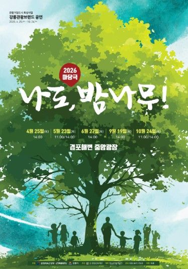 특히, 「마당극 나도 밤나무」는 25일(토) 오후 2시 경포해변 중앙광장에서 올해의 첫 포문을 연다. 푸른 바다를 배경으로 진행되는 이번 무대는 단순한 관람을 넘어, 관광객과 시민이 함께 호흡하고 즐길 수 있는 참여형 열린 공연 형식으로 기획돼 특별한 추억을 선사할 것으로 기대된다.