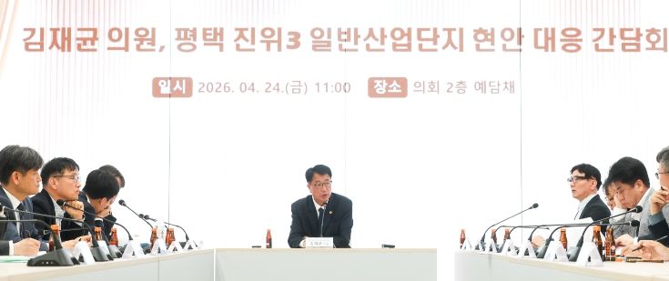 김재균 의원은 24일 경기도의회 2층 예담채에서 경기도 산업입지과, 평택시 반도체AI과, 평택도시공사, 사업시행자, 그리고 입주기업 대표가 참석하는 ‘진위3 일반산업단지 현안 대응 간담회’를 긴급 개최했다.