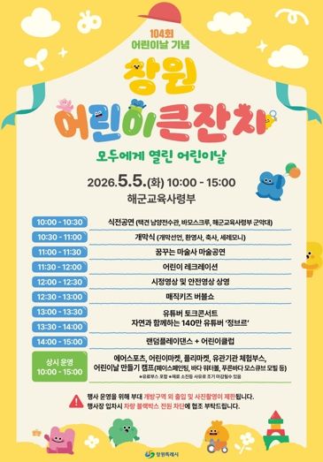 이수경 창원시 아동청소년과장은 “미래의 주인공인 어린이들이 가족과 함께 마음껏 뛰어놀며 꿈을 키울 수 있도록 안전하고 알찬 행사를 준비하겠다”고 전했다.