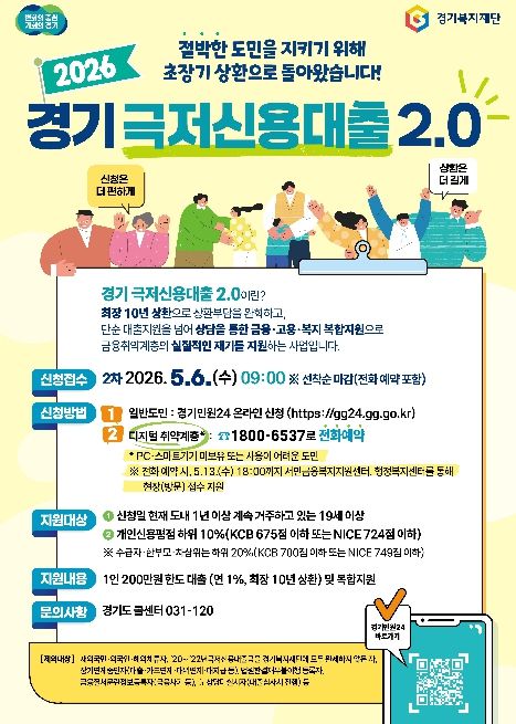 경기호연뉴스 민선기 기자 | 경기도가 5월 6일 오전 9시부터 금융취약계층의 생활 안정을 지원하는 ‘경기 극저신용대출 2.0’ 2차 접수를 시작한다.