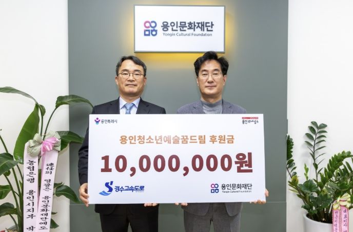 경기호연뉴스 민선기 기자 | 용인문화재단은 지난 23일 경수고속도로(주)로부터 용인시 관내 청소년 예술 장학사업인 ‘용인청소년예술꿈드림’ 지원을 위한 기부금 1,000만 원을 기탁받았다고 밝혔다. 이번 후원은 용인서울고속도로를 이용하는 통행차량 1대당 1원씩 적립하고, 사회공헌예산을 추가로 편성해 지역사회 환원과 기업의 사회적 책임 실천 차원에서 추진됐다.