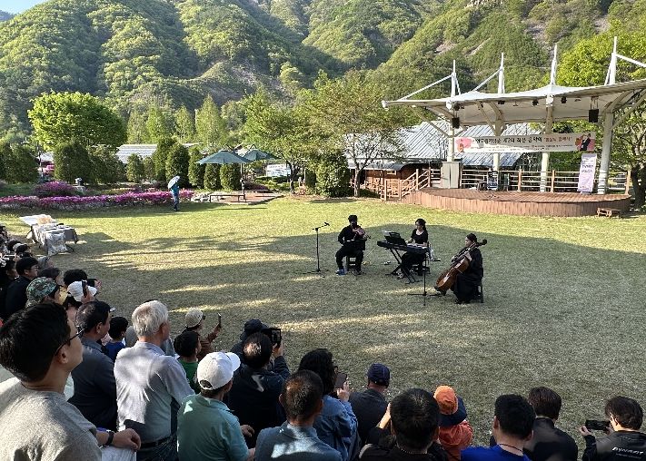 경기호연뉴스 민선기 기자 | 전북특별자치도 진안군 정천면에 위치한 진안고원치유숲에서 지난 4월 25일, 제2회 작은 음악회 ‘봄날의 클래식’이 숲속 야외공연장에서 성황리에 개최됐다.