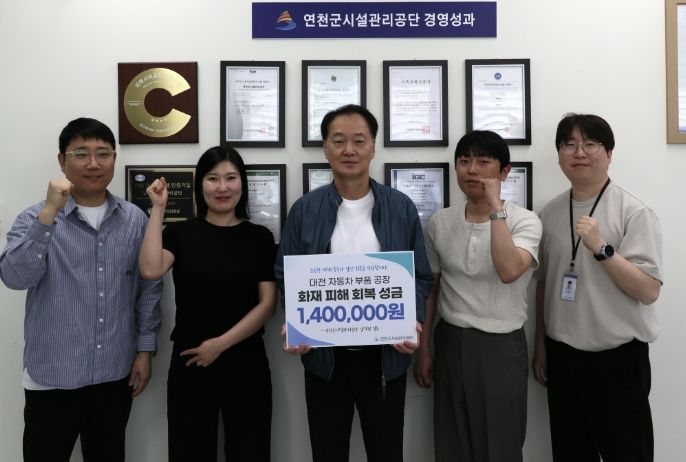 경기호연뉴스 민선기 기자 | 연천군시설관리공단은 지난 23일 대전 자동차 부품 공장 화재로 피해를 입은 근로자 및 이재민 지원을 위한 성금 1,400,000원을 대한적십자사에 전달했다고 밝혔다.