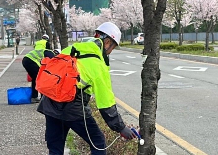 수간주사는 나무 줄기에 약제를 직접 주입하는 방식으로, 약제가 외부로 퍼지지 않아 도심지나 보행자 밀집 지역에서도 안전하게 사용할 수 있다. 또한 저수지나 하천변 등 기존 방제가 어려웠던 구간에도 적용할 수 있어, 관리 사각지대 해소에 효과가 있을 것으로 기대된다.