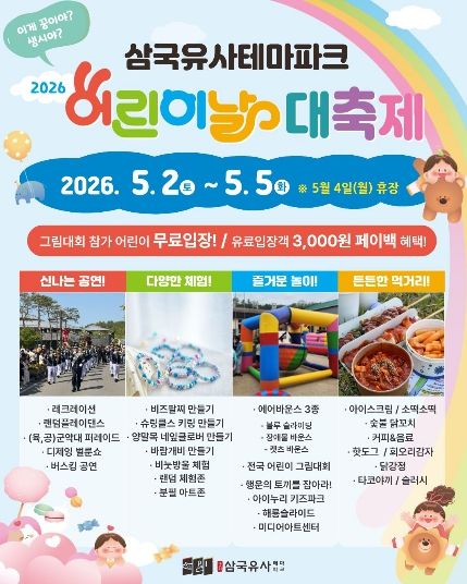 경기호연뉴스 민선기 기자 | 군위문화관광재단이 다가오는‘2026 어린이날 대축제’를 더욱 알차게 즐길 수 있는 상세 일정과 장소별 프로그램을 전격 공개했다.