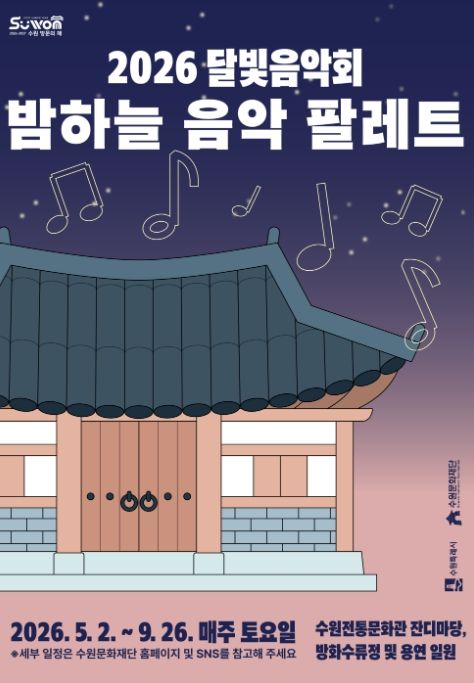 경기호연뉴스 민선기 기자 | 수원문화재단은 오는 5월부터 9월까지 국가유산과 자연, 음악이 어우러진 야간 공연 프로그램 '2026 달빛음악회 '밤하늘 음악 팔레트'’를 운영한다.
