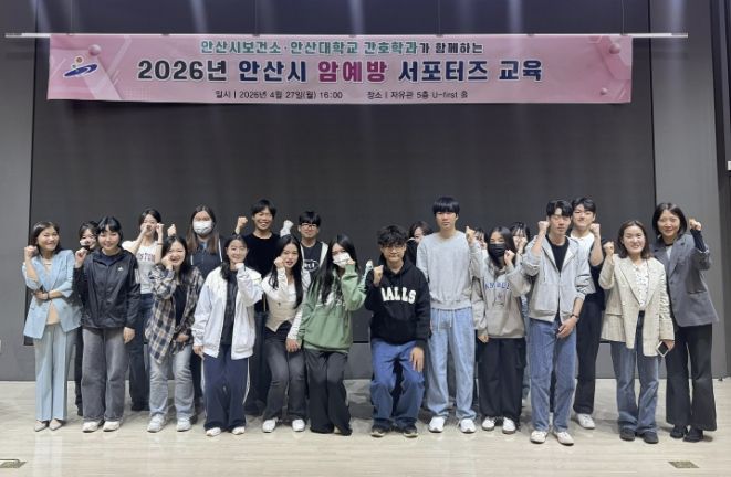 경기호연뉴스 민선기 기자 | 안산시는 지난 27일 안산대학교 자유관 U-first 홀에서 ‘2026년 안산시 암 예방 서포터즈 발대식 및 교육’을 개최했다고 28일 밝혔다.