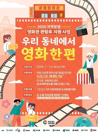 경기호연뉴스 민선기 기자 | 거창군은 다가오는 5월 가정의 달을 맞이해 군민들의 문화 향유 기회를 확대하고 지역 영화관의 활성화를 돕기 위해 ‘2026년 지역상생 영화관 관람료 지원사업’을 시행한다.