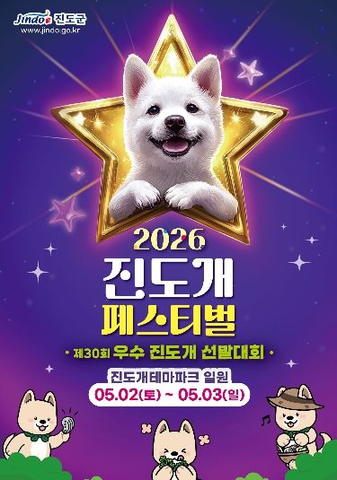 경기호연뉴스 민선기 기자 | 진도군이 오는 5월 2일부터 3일까지 이틀간 진도개테마파크에서 ‘진도개의 고향, 진도개테마파크에서의 만남’을 주제로 ‘2026 진도개 페스티벌’과 ‘제30회 우수 진도개 선발대회’을 동시에 개최한다.