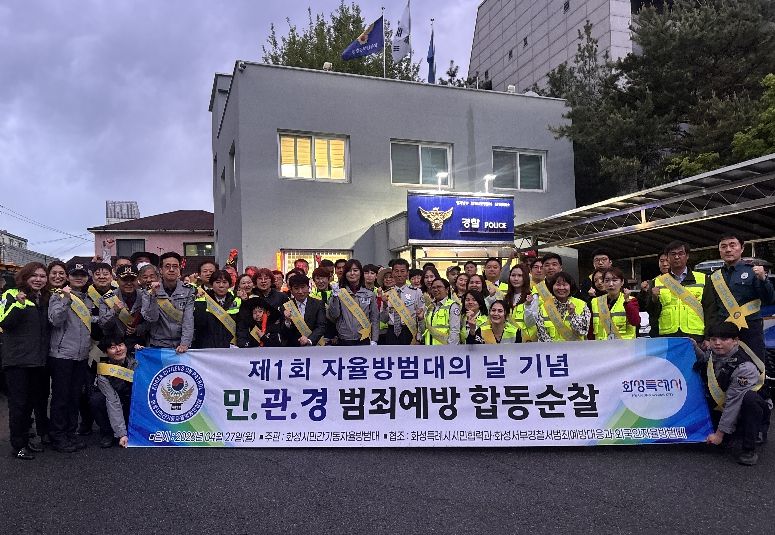 경기호연뉴스 민선기 기자 | 화성특례시는 제1회 자율방범대의 날을 맞아 지난 27일 남양시장 일대에서 화성서부경찰서, 서부민간기동자율방범연합대와 함께 민·관·경 합동순찰을 실시했다.