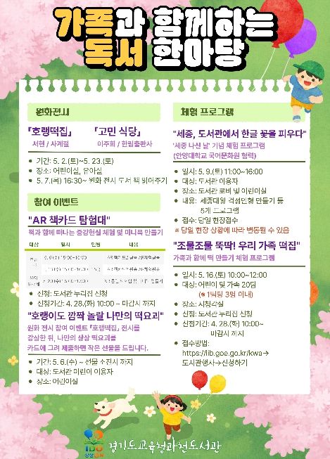경기호연뉴스 민선기 기자 | 경기도교육청과천도서관이 5월 가정의 달을 맞아 ‘가족과 함께하는 독서 한마당’을 운영한다.