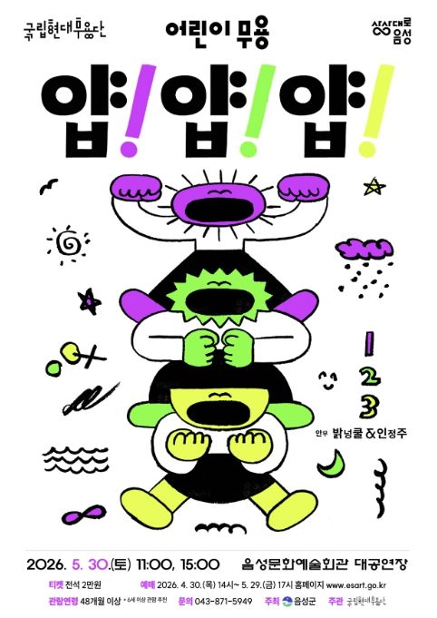 경기호연뉴스 민선기 기자 | 음성군은 어린이들을 춤의 세계로 초대하는 국립현대무용단의 어린이 무용 '얍! 얍! 얍!'을 오는 5월 30일 음성문화예술회관에서 개최한다고 밝혔다.