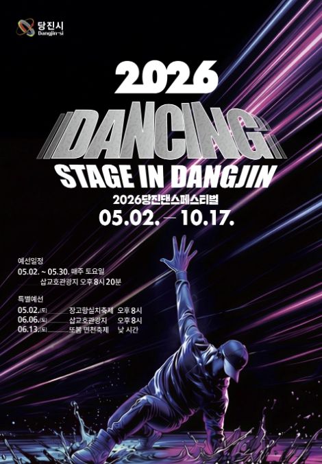 경기호연뉴스 민선기 기자 | 당진시는 시민과 관광객이 함께 즐기는 당진 댄스 페스티벌 ‘2026 댄싱 스테이지 in 당진’ 본선 진출팀 선발을 위한 예선을 오는 5월 2일부터 6월 13일까지 매주 토요일 개최한다고 29일 밝혔다.