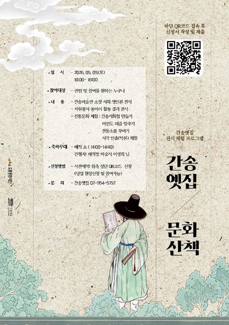 경기호연뉴스 민선기 기자 | 서울 도봉구 도봉문화재단 간송옛집이 오는 5월 9일 오전 10시부터 간송옛집에서 전시·체험·공연이 결합한 참여형 문화프로그램 ‘간송옛집 26년도 문화산책’을 진행한다.