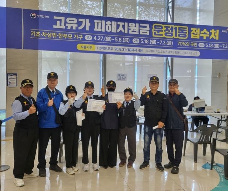 조동준 운정1동장은 “실버경찰대의 적극적인 봉사 덕분에 어르신들이 보다 편리하게 고유가 피해지원금을 신청하고 있다”라며 “앞으로도 민관이 함께 힘을 모아 주민 생활 안정을 위한 현장 지원을 강화하겠다”라고 전했다.