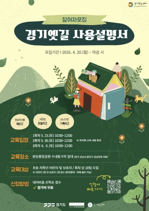 경기역사문화유산원 관계자는 “이번 프로그램은 어린이들이 경기옛길의 역사와 자연을 직접 보고, 관찰하고, 손으로 기록하면서 지역 문화유산을 친숙하게 받아들일 수 있도록 마련했다”며 “가족이 함께 참여해 배우고 나누는 뜻깊은 시간이 되길 바란다”고 말했다.