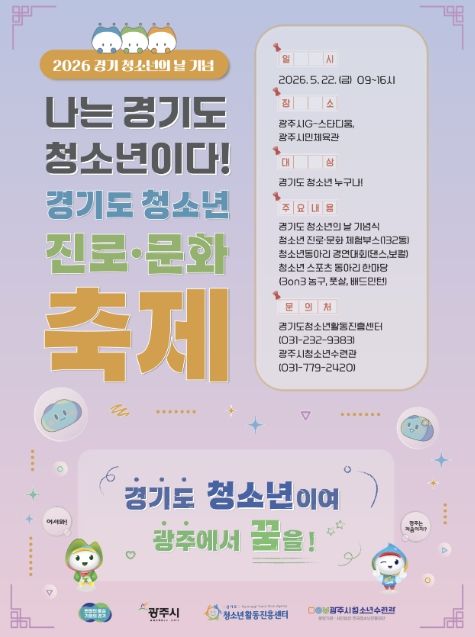 경기호연뉴스 민선기 기자 | 광주시는 오는 5월 22일 광주시 G-스타디움 및 광주시민체육관 일원에서 ‘2026년 경기도 청소년 진로·문화 축제’를 개최한다고 29일 밝혔다.