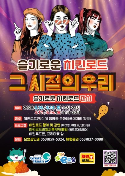 김우진 익산시 청년경제국장은 "과거 번성했던 영정통 거리처럼 중앙동 치킨로드가 모든 세대를 아우르는 전국적인 명소가 되길 바란다"며 "시민과 관광객 모두가 만족할 수 있는 안전한 축제를 준비해 익산을 대표하는 행사로 자리 잡을 수 있도록 최선을 다하겠다"고 말했다.