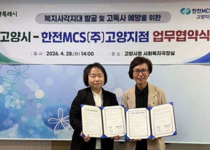 경기호연뉴스 민선기 기자 | 고양특례시는 지난 28일 시청 사회복지국장실에서 한전MCS(주) 고양지점과 위기가구 발굴 및 지원을 위한 ‘온(溫)마음 복지스위치 ON’ 업무협약을 체결했다.