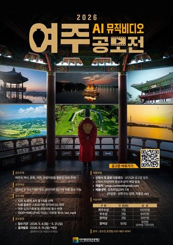 이번 공모전은 AI 기술을 기반으로 제작된 음원을 활용해 누구나 직접 뮤직비디오를 제작·참여할 수 있도록 기획됐으며, 여주의 역사·문화·자연 관광자원을 창의적으로 표현한 영상 콘텐츠를 발굴하고, 디지털 기반 관광 홍보 콘텐츠를 확대하기 위해 추진된다.