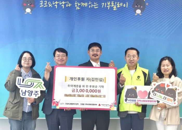 경기호연뉴스 민선기 기자 | 남양주시는 29일 진접오남행정복지센터에서 김민섭씨가 취약계층 지원을 위해 후원금 300만 원을 전달했다고 밝혔다.