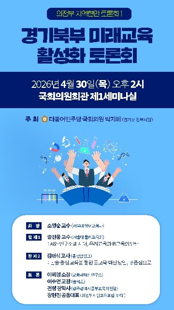 경기호연뉴스 민선기 기자 | 더불어민주당 박지혜 의원(의정부시갑)은 오는 30일 오후 2시, 국회의원회관 제1세미나실에서 '경기북부 미래교육 활성화 토론회'를 개최한다.