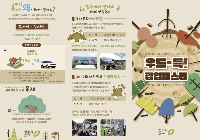 시 관계자는 “우드-득! 팝업페스타를 통해 시민들이 목재와 친숙해지고 숲의 가치를 자연스럽게 체험하는 기회가 되길 바란다”며 䄞월 목재문화페스티벌과 10월 대한민국 산림박람회도 청주에서 개최될 예정인 만큼, 앞으로도 시민과 함께하는 산림정책을 적극 추진해 산림문화 확산에 최선을 다하겠다”고 말했다.