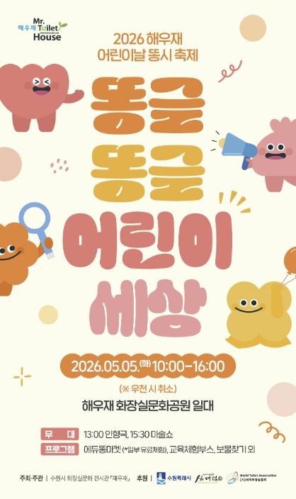 경기호연뉴스 민선기 기자 | ‘2026 해우재 어린이날 똥시 축제-똥글똥글 어린이 세상’이 5월 5일 오전 10시부터 오후 4시까지 해우재 화장실문화공원 일원에서 열린다.