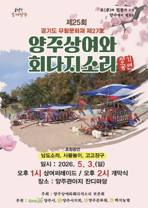 경기호연뉴스 민선기 기자 | 양주시는 ‘제25회 양주상여와회다지소리 정기공연’을 오는 5월 3일 양주관아지에서 개최한다고 밝혔다.