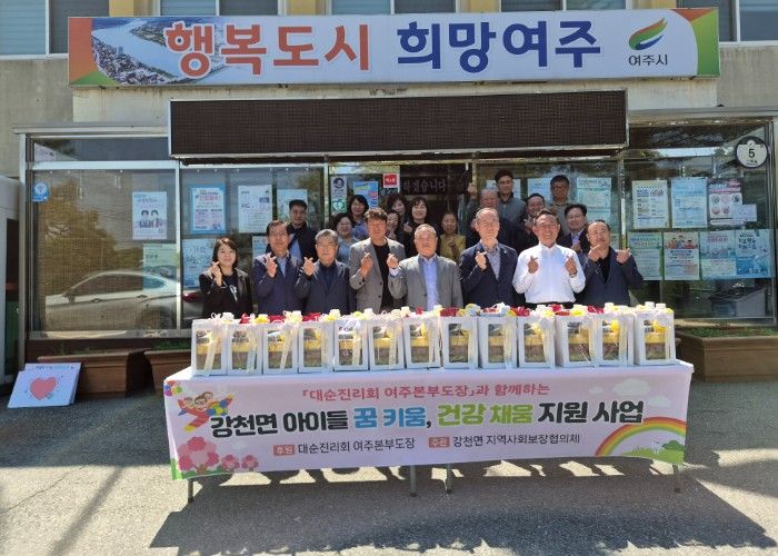 경기호연뉴스 민선기 기자 | 강천면 지역사회보장협의체는 다가오는 제104회 어린이날을 맞아 지난 2026년 4월 30일 대순진리회 여주본부도장과 함께 ‘강천면 아이들 꿈 키움, 건강 채움’ 전달식을 가졌다.