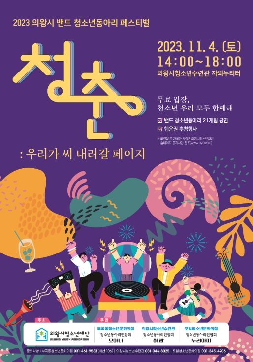 이번 페스티벌은 의왕시청소년재단이 주최하고 의왕시청소년수련관, 부곡동청소년문화의집, 포일청소년문화의집 3개 기관의 청소년동아리연합회 ‘하람’, ‘모아나’, ‘누리아띠’가 주관한다.