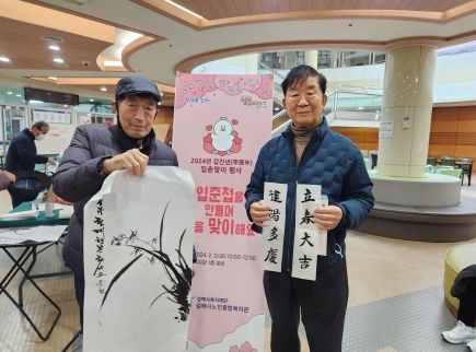2024년 갑진년(甲辰年)을 맞이하여 어르신들의 행운과 건강을 기원하며 삶의 활력을 도모하고자 계획된 금일 행사는 노년사회화 취미여가반 강사와 서예반 수강생 어르신들의 봉사로 진행됐다.
