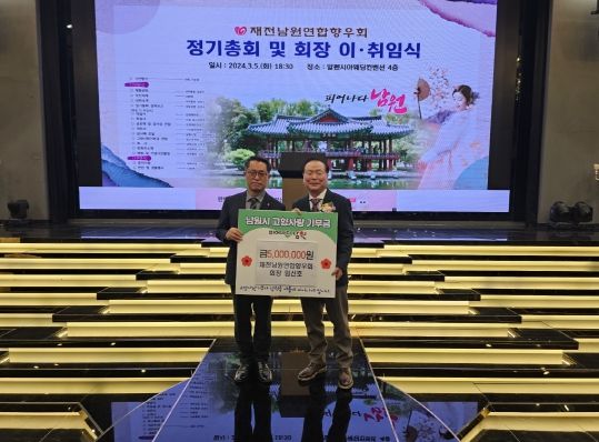 최경식 남원시장은 “더욱 발전해나가는 재전남원엽합회가 되기를 진심으로 응원하며, 기부금은 청소년 인재 육성 및 지역발전을 위한 사업에 쓰도록하겠다”며 감사 인사를 전했다.