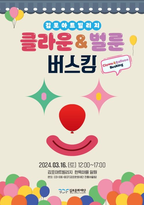 경기호연뉴스 김대엽 기자 | (재)김포문화재단이 오는 16일 김포아트빌리지 한옥마을 일원에서 가족친화형 공연 '클라운&벌룬 버스킹'을 선보인다.