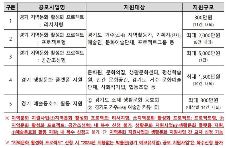 사업마다 공모일정 등이 상이하니 자세한 공모 안내는 경기문화재단 누리집 공모 공고를 통해 확인할 수 있다.
