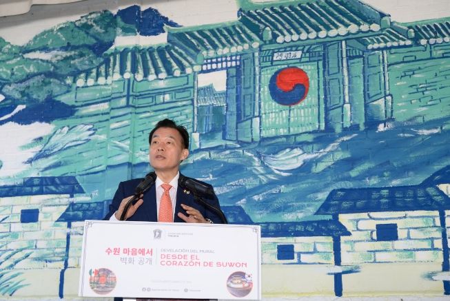 경기호연뉴스 김대엽 기자 | 지구 반대편 멕시코 톨루카시에 ‘수원 정원’이 생겼다. 정원 옆에는 수원화성과 화성행궁 등을 그린 대형 벽화 작품이 들어섰다.
