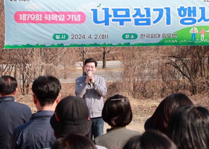 경기호연뉴스 김대엽 기자 | 용인특례시는 제79회 식목일을 앞둔 2일 한국외국어대학교 글로벌캠퍼스 입구 주차장 인근 임도변(처인구 모현읍 왕산리 907번지)에서 편백나무를 심는 행사를 열었다.