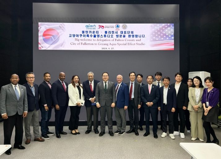 경기호연뉴스 민선기 기자 | 고양산업진흥원은 지난 4월 27일 오전 미(美) 조지아주의 최대 카운티인 풀턴카운티(Fulton County)와 캘리포니아주 풀러턴시(City of Fullerton) 대표단이 고양산업진흥원이 운영하는 고양아쿠아특수촬영스튜디오를 방문했다고 밝혔다.