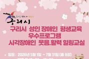 경기호연뉴스 민선기 기자 | 사단법인 경기도시각장애인연합회 구리시지회는 구리시와 경기도의 지원을 받아 2026년 5월부터 ‘시각장애인 웃음·활력 힐링 교실’을 운영할 예정이라고 밝혔다. 이번 프로그램은 시각장애인 어르신들의 정서적 안정과 신체 활력 증진, 사회적 교류 확대를 위해 마련됐다. 웃음 치료를 비롯해 전신 몸풀기 동작, 요가, 율동 등 다양한 활동을 통해 몸과 마음을 함께 돌볼 수 있도록 구성했다. 특히 참여 중심으로 운영해 어르신들이 자연스럽게 소통하고 교류할 수 있도록 지원하며, 이를 통해 사회적 고립감 완화와 공동체 의식 형성에도 긍정적인 변화를 기대하고 있다. 웃음과 신체활동이 어우러진 프로그램을 통해 스트레스를 줄이고 일상에 활력을 더하는 시간이 될 전망이다. 이번 사업은 시각장애인을 위한 맞춤형 평생학습 프로그램으로, 5월부터 선착순 8명을 대상으로 총 8회 과정으로 운영된다. 건강과 정서 지원을 함께 아우르며 지역사회 내 포용적 평생학습 환경 조성에도 의미를 더하고 있다. 또한 오는 10월에는 평생학습 축제에 참여해 프로그램 운영 성과를 공유하고 시민들과 소통하는 자리도 마련할